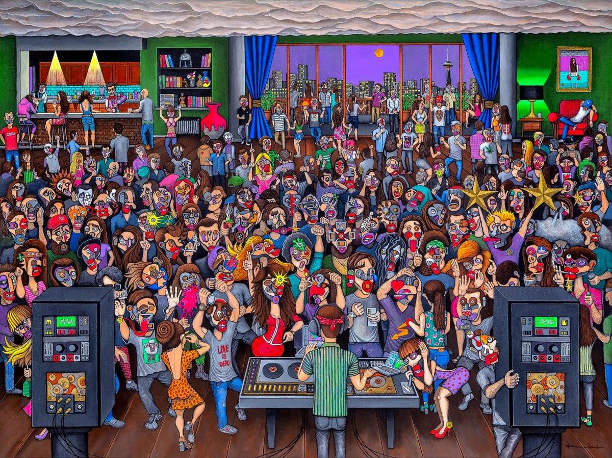 Gallery Hopping, Fridays. Acrylic on canvas. 2025.
